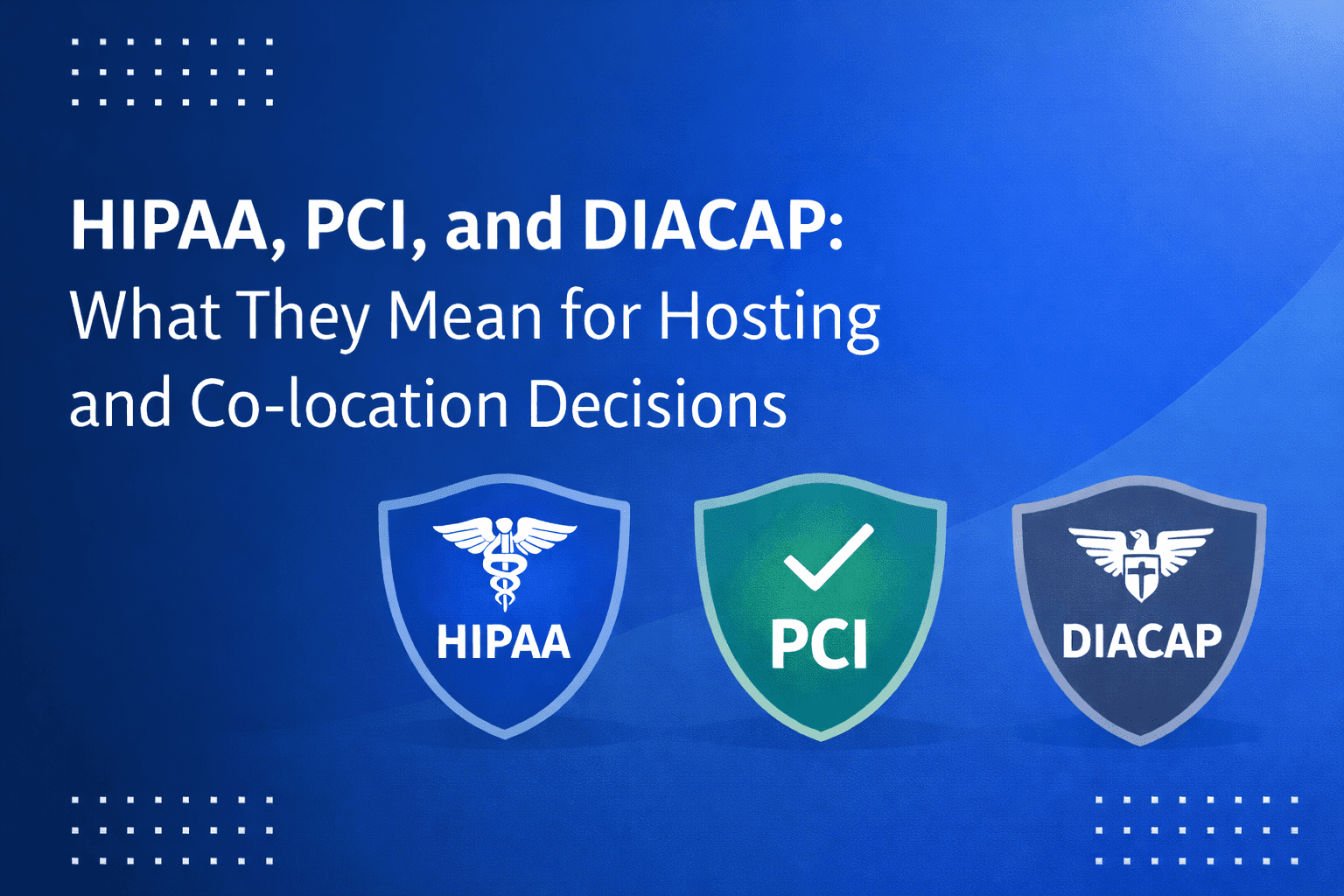 When you’re evaluating hosting or Co-location, “compliance” can sound like a label providers throw around to signal trust. But HIPAA, PCI, and DIACAP aren’t interchangeable badges, and they don’t carry the same expectations, evidence, or risk.